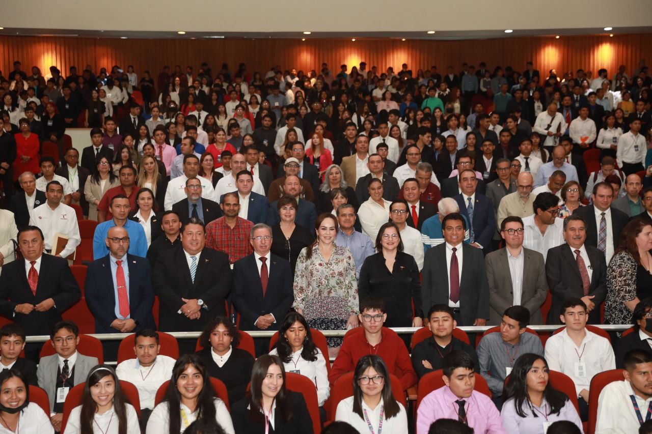 Allí también anunció una nueva beca para apoyar económicamente en el trámite del título y cédula profesional a estudiantes que están por culminar sus carreras.