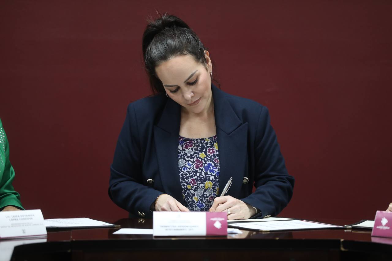 Al hacer uso de la palabra, Leiza López Córdoba, presidenta de la Barra de Abogados, destacó la relevancia de esta colaboración para apoyar y brindar asesoría a las mujeres de Nuevo Laredo que sufren de violencia.