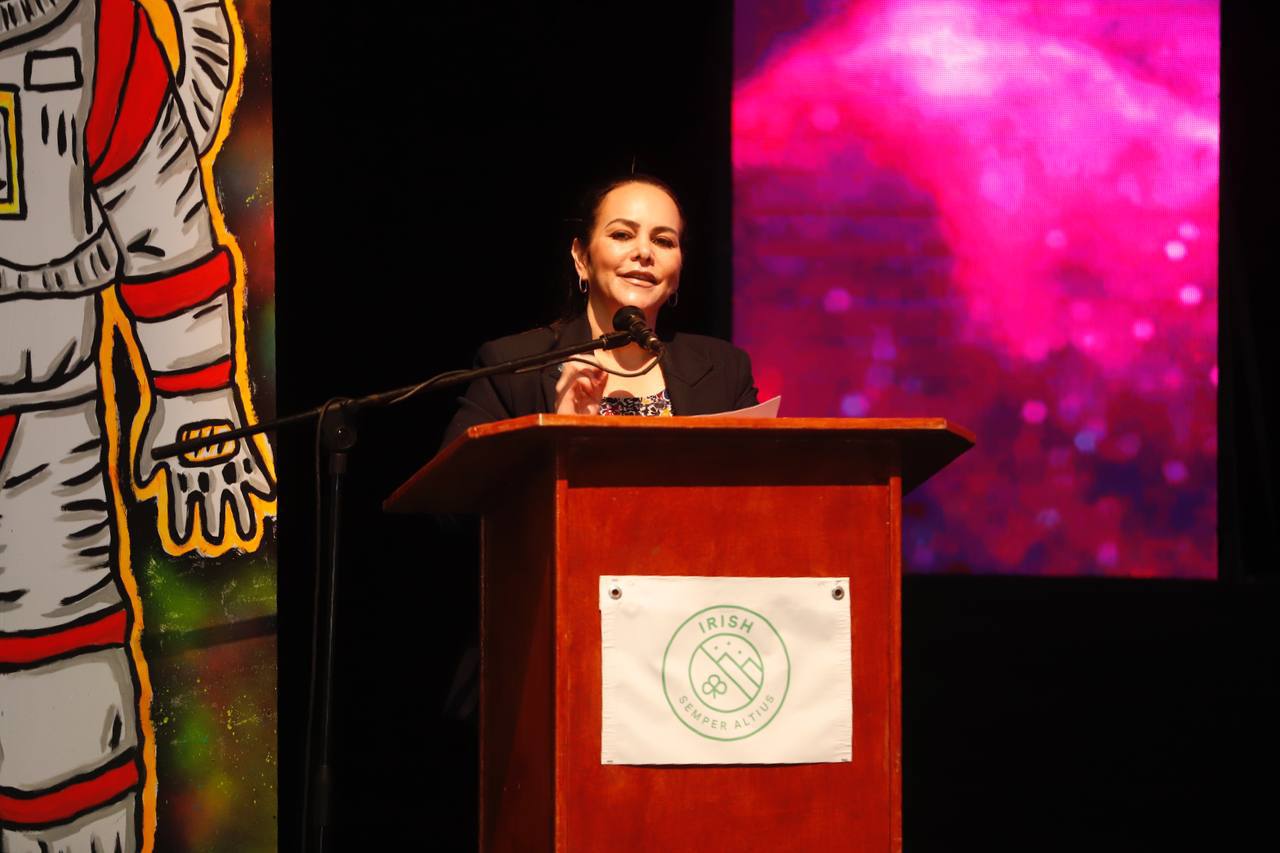 Ante más de 1, 200 estudiantes, en el marco del noveno Congreso IUVE «Despegando hacia el éxito», una iniciativa organizada por el Colegio Irlandés con apoyo del Gobierno Municipal, la presidenta municipal dialogó con estudiantes de diferentes preparatorias que se dieron cita en el Centro Cultural.