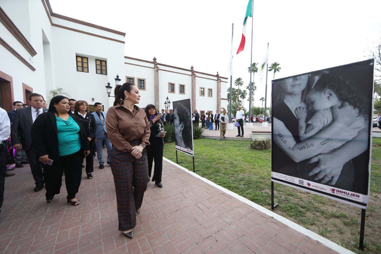 La alcaldesa Carmen Lilia Canturosas, junto a Cynthia Canturosas Villarreal, presidenta del Consejo Consultivo del Instituto Municipal de la Mujer (INMUJER) y Cynthia Rodríguez Leija, directora del Instituto, recorrieron el pasillo para admirar las fotografías.